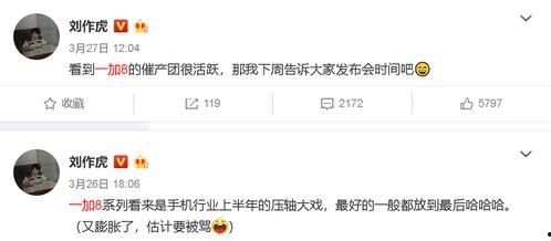 你知道吗?最近科技圈可是炸开了锅,因为一加手机的新品——一加8系列就要来了!而这次,刘作虎亲自出马,带来了一段超级爆料视频,让我们提前一睹为快。接下来,就让我带你一起深入解析这段视频,看看一加8系列都有哪些亮点吧!